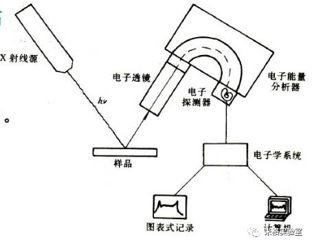 用X射线照射样品,使样品中原子或分子的电子受激发射,逃逸出样品(逃逸出的电子称为光电子),然后测量这些电子的能量分布。通过与已知元素的原子或离子的不同壳层的电子的能量相比较,就可确定未知样品表层中原子或离子的组成和状态。