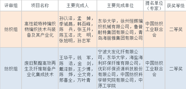 1月8日上午,中共中央、国务院在北京隆重举行2018年度国家科学技术奖励大会。东华大学《高性能特种编织物编织技术与装备及其产业化》和《废旧聚酯高效再生及纤维制备产业化集成技术》两项目获国家科技进步二等奖。