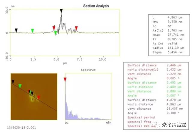 ( 2 ).可对扫描所得的三维形貌图象进行粗糙度计算、厚度、步宽、方框图或颗粒度分析。